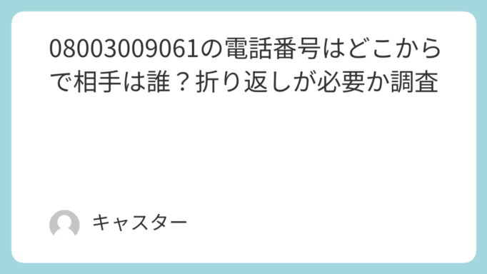 08003009061の電話番号はどこからで相手は誰?折り返しが必要か調査