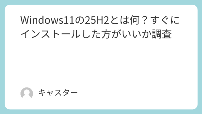 Windows11の25H2とは何?すぐにインストールした方がいいか調査