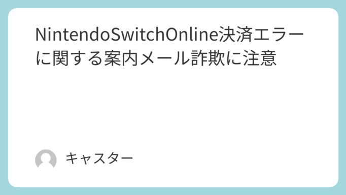 NintendoSwitchOnline決済エラーに関する案内メール詐欺に注意