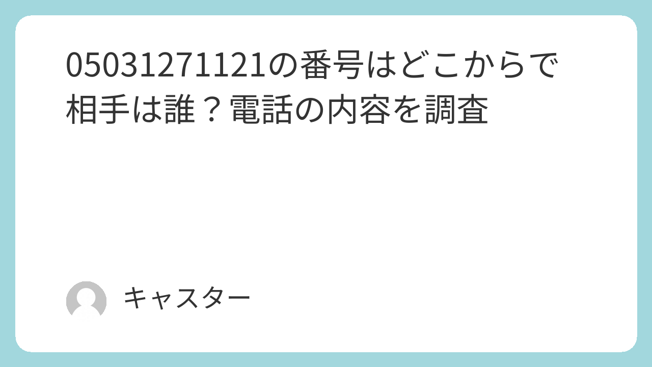 さて、今回取り上げるのは『05031271121』の電話番号についてです。