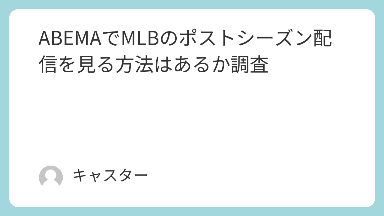 さて、今回とりあげるのは『ABEMAでMLBのポストシーズン配信を見る方法はあるか』についてです