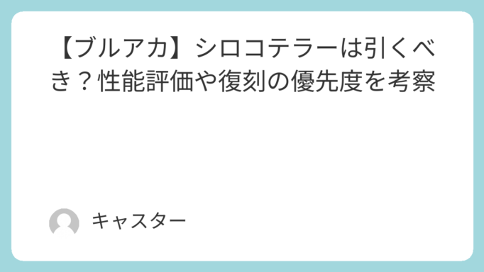 【ブルアカ】シロコテラーは引くべき?性能評価や復刻の優先度を考察