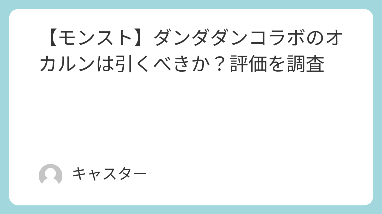 さて、今回はモンストのダンダダンコラボの『オカルン』についてです。