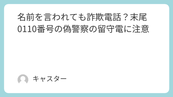 名前を言われても詐欺電話?末尾0110番号の偽警察の留守電に注意