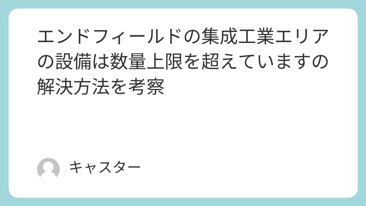 ・「集成工業エリアの設備は数量上限を超えています」と表示される