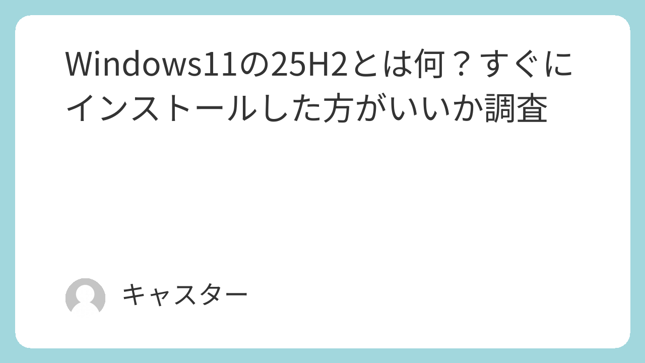 Windows 11 25H2は安定性を重視した軽量アップデートですが、現時点(2025年10月中旬)では「すぐにインストールしなくても問題はない」という立場が一般的です。